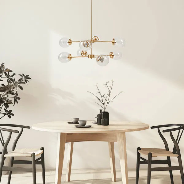 9- Light Globe Chandelier, Wood Chandelier Hanging Light Fixture with Adjustable Chain