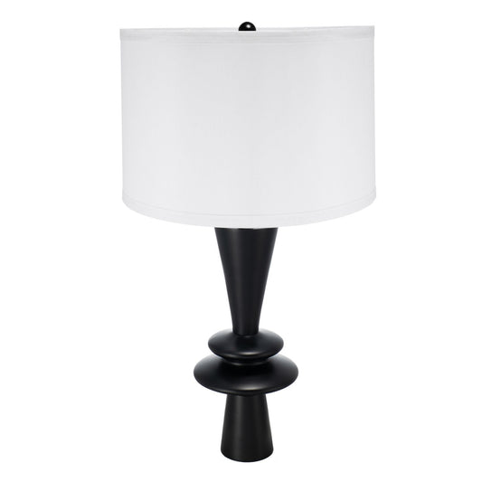 26.7" Black Aluminum Table Lamp – Modern Sculptural Lamp with Dual Round Accents & White Drum Shade