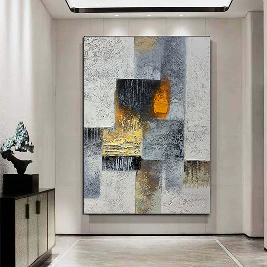 Hand-Painted Color Block Abstract Oil Painting – Modern Canvas Wall Art for Living Room Décor
