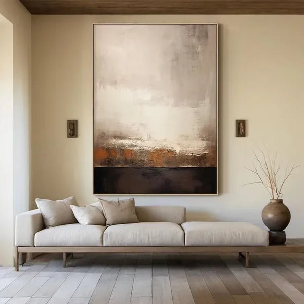 Original Brown Abstract Oil Painting – Minimalist Wabi-Sabi Textured Art in Neutral Tones
