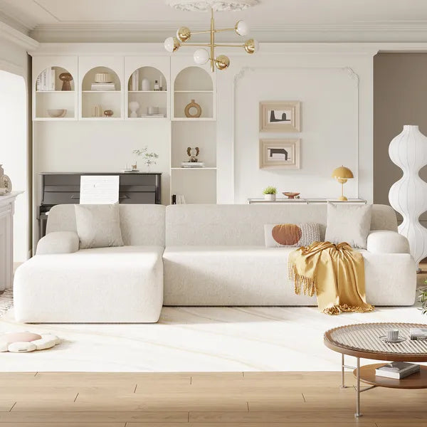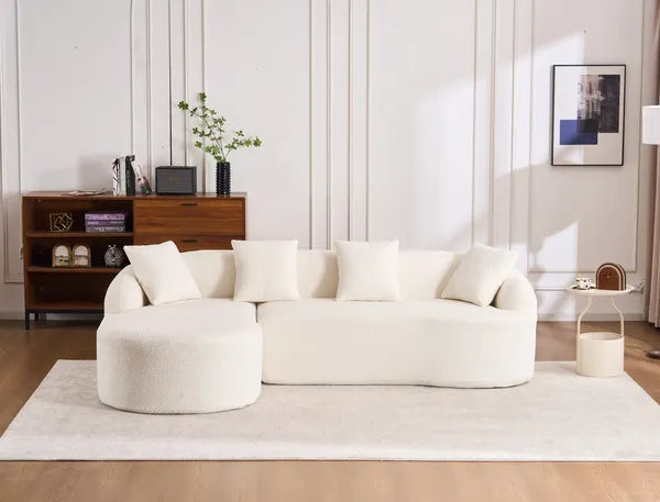 Sahara Beige Boucle Sectional Sofa W/3 Pillows