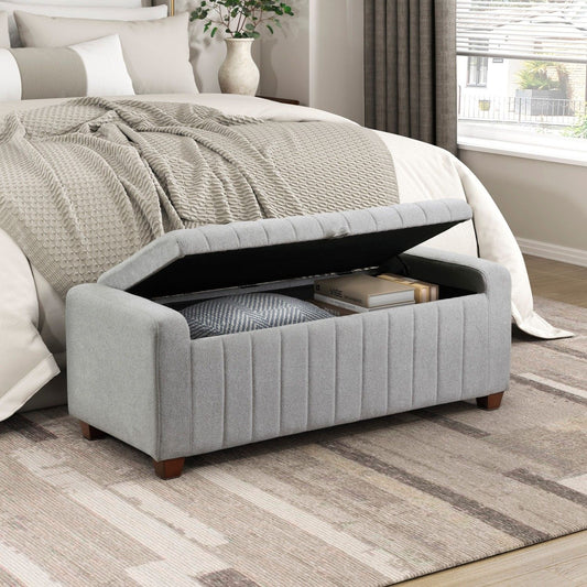 Contemporary Gray Bouclé Storage Bench – Upholstered Seat with Durable Plywood Frame