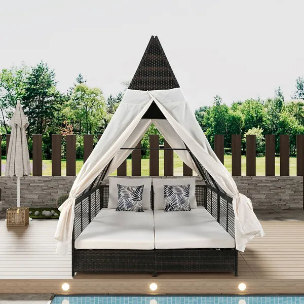 Lavina Wicker Outdoor Canopy Daybed Water Resistant Cushion (Multi brown/White)