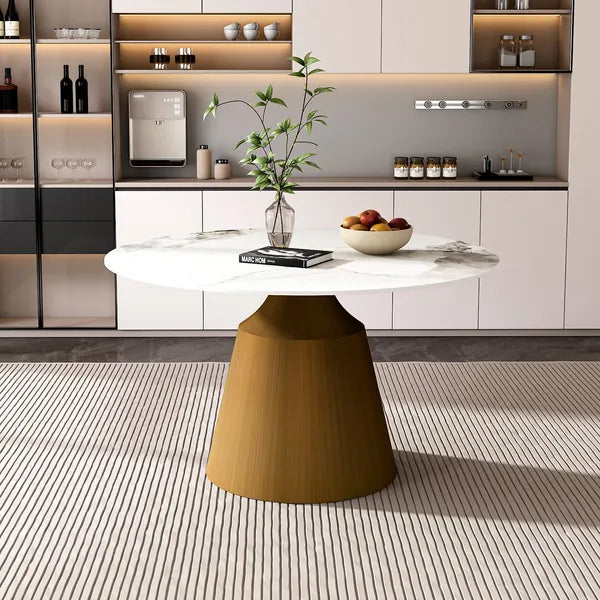 Modern white artificial stone round beige plywood PU base dining table-(Not including chairs.)
