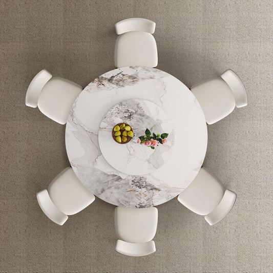Round 7-Piece Dining Set - Faux Marble Table with Rotating Tray & 6 PU Leather Chairs
