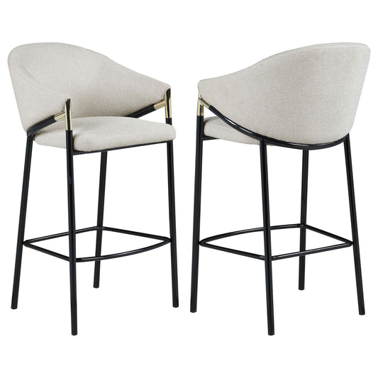 Beige and Glossy Black Sloped Arm Bar Stools (Set of 2)