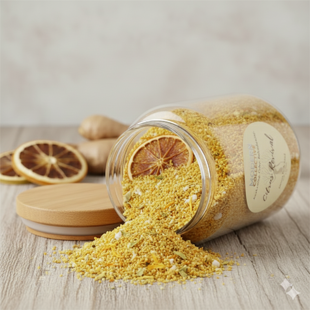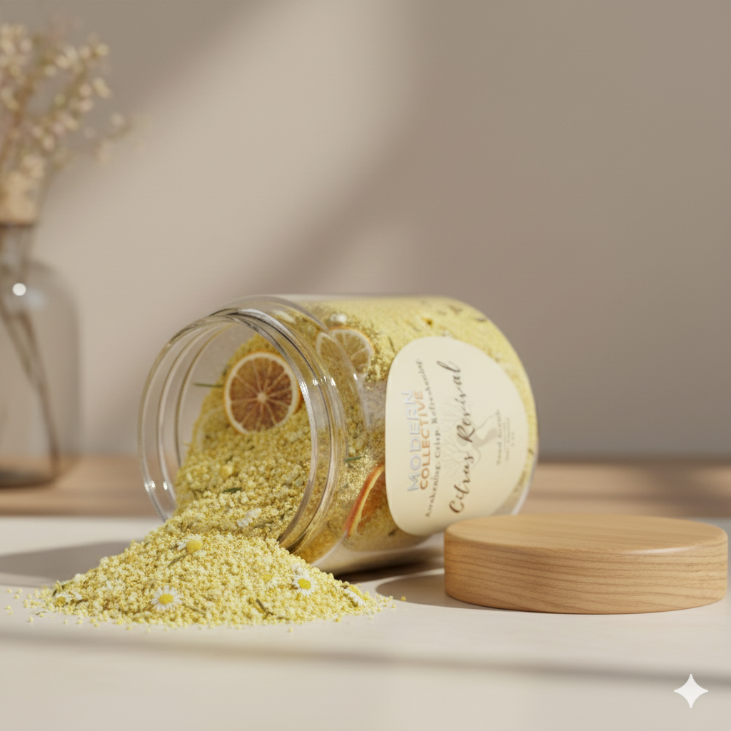Citrus Revival is your energizing detox ritual — handcrafted to awaken your senses, support circulation, and restore full-body clarity. This vibrant blend combines Dead Sea salt, Himalayan pink salt, Epsom salt, and magnesium flakes, delivering a mineral-rich experience that strengthens, soothes, and revitalizes tired muscles.