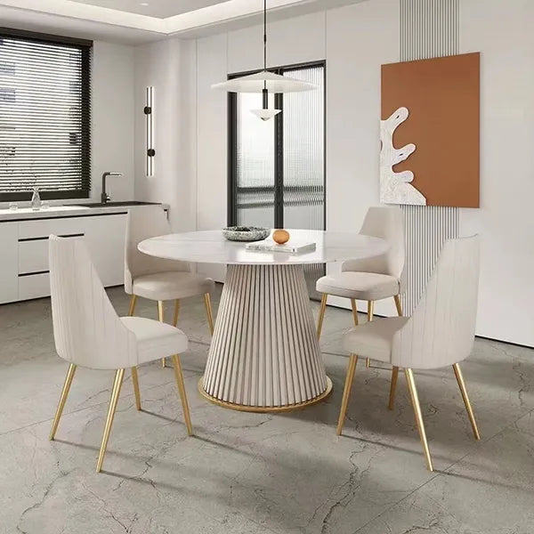 Round dining table: This dining table is 53 inches in size and 30 inches in height, made of sintered stone and stainless steel base, and is recommended for 4-6 people. The dining table with classic design can be used not only for kitchen dining, but also for living room, dining room, office, café, outdoor and other occasions.